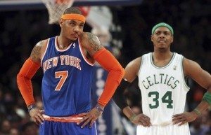 Game 1: The Celtics only scored eight points in the entire fourth quarter on Saturday, and that really took the wind out of the sails of a game that was very close and very winnable going into the final stanza. F Paul Pierce, G Avery Bradley, and F Jeff Green combined to score 63 points, but the rest of the Boston team only had 15 for the whole game. F Carmelo Anthony started off his postseason in style, shooting 13-of-29 from the floor and scoring 36 points to lead New York to a ‘W’. Knicks 85 – Celtics 78 (Knicks Lead Series 1-0)