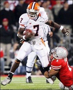 Juice Williams had a breakout senior campaign for the Illini. The Illinois quarterback threw for 3,173 yards and 22 touchdowns in 2008 while rushing for another 719 additional yards. The big year gave many fans the indication that Williams would be an unstoppable force in his senior year. Those expectations had Illinois listed as one of the best offenses in the Big Ten entering 2009 with Williams at quarterback and WR Arrelious Benn. However, the Illini have been anything but explosive this season during their disappointing 1-4 start and the problem has been where they least expected on the offensive side of the ball. Outside of the Illini’s thrashing over an inferior Illinois State team 45-17, the team is 0-4. Williams has been a big disappointment completing just 54% on the season and only 628 yards after 5 games. After throwing for 3,000 plus yards a season ago, the Illini quarterback is on track to throw for less than 1,500 yards. Williams has 4 interceptions on the season to just 2 touchdowns and the Illinois offense has averaged just 10 points per game in their 4 losses on the season. The questionable performance by Williams has even caused the Illini to explore options with quarterback Eddie McGee as they continue to try to find some solutions for an offense that was suppose to be carried by Williams this season.